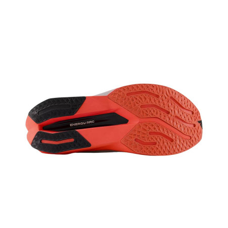 - El Energy Arc combina la geometría de la placa de fibra de carbono con un canal hueco situado estratégicamente en la entresuela que permite acumular más energía para luego liberarla en cada zancada